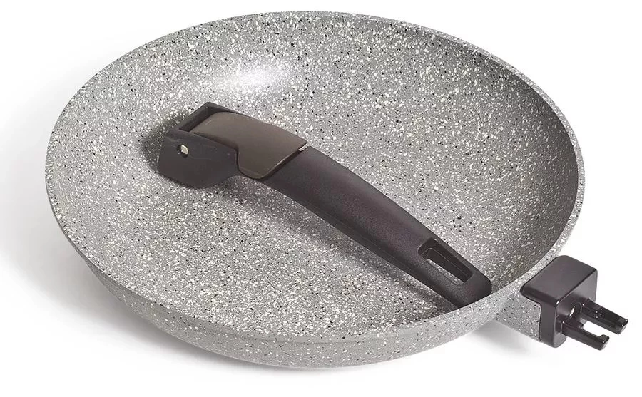 Made with a triple coated non-stick surface over lightweight die-cast aluminium the handle is easily detached making it compact for transport.